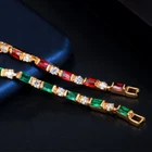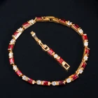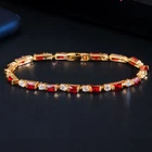 Lovely Yellow Gold Plated Cubic Zirconia Red Baguette Tennis Chain Link Bracelet Specifications : 1. Condition : New 2. Material : Cubic Zirconia 3. Bracelet Length : about 17 + 3 cm extended clasp 4. Metal Color : Yellow Gold Plated Features : 1. Cubic Zirconia High Quality Material - Diamond-like Brilliance , Prong Setting and CZ Stone are stable. 2. A Perfect Jewelry Gift for Women , Girls , Mother , Wife , Lover , Fiancee , Friends . 3. Suitable for Various Occasions: Ideal for Wedding, Prom, Pageant, Parties, Homecoming, Black Tie Formal Affairs, Holidays , Birthday , Christmas , Valentine's Day , Anniversary and Special Occasions. Package Includes: 1Pc Bracelet Payment Delivery details Terms of sales & Feedbacks About us & Contact us Our commitment Payment 1. We only ship item to your Ebay verified address . Please Make sure all address are the same 2.Please leave note in ebay when making the payment if you have any special request (colors/size). Delivery details We only send items to the registered eBay address.Items will be shipped within 2 business days from the date payment is received (not include public holiday and weekend) . As per eBay regulations, import duties, taxes, and customs charges are the buyer's responsibility. Please check with your country's customs office to determine what these additional costs may be prior to bidding or buying. Terms of sales & Feedbacks After-Sale Please contact us to request a return/replace/refund authorization .It will be best if you use ebay message to contact me. 1, Return and replacement request is available only the requests within 30 days after parcel received. 2, Returning the item as the same condition as received. Situation and solution Defectives ---Please contact us and provide a photo of the defective part. After situation confirmed,we will offer you refund/return/replacement according to the situation Not as Described ---Please contact us and provide a photo of the wrong part. After situation confirmed,we will offer you refund/return/replacement according to the situation Not Received ---Please undersatnding shipping on the way was out of our control ,because of the busy shipping season,holidays,bad weather or force majeure etc. It may be delay for days. But if it took too much time and not deliveried, Please message me, I will offer you solution for it. Feedbacks 1. If you are satisfied with our service, please leave us a + Good feedback and rate the details of the transaction (DSR) with a. . When you rate the shipping time part please take international transit into consideration.] Your recognition will make us more confident to develop business and serve you better. 2. Please contact us first if you have any problem with the items,we will solve it in time ! 3. Please do not leave Neutral or Negative Feedback before you contact us, Thanks For Your Business ! About us & Contact us Working time: Chinese time(Eastern eight zones):Monday to Friday ,9:00 am to 6:00 pm. We do not work on chinese legal holiday. Message reply: We will reply all messages within 24 hours of business time. Please contact us via ebay message, it was the best way for both you and us to solve problems. Any questions or anything you need, please feel free to contact us. Our commitment 1.Wholesale price will be offered to you if you need in bulk ! 2.About Size
