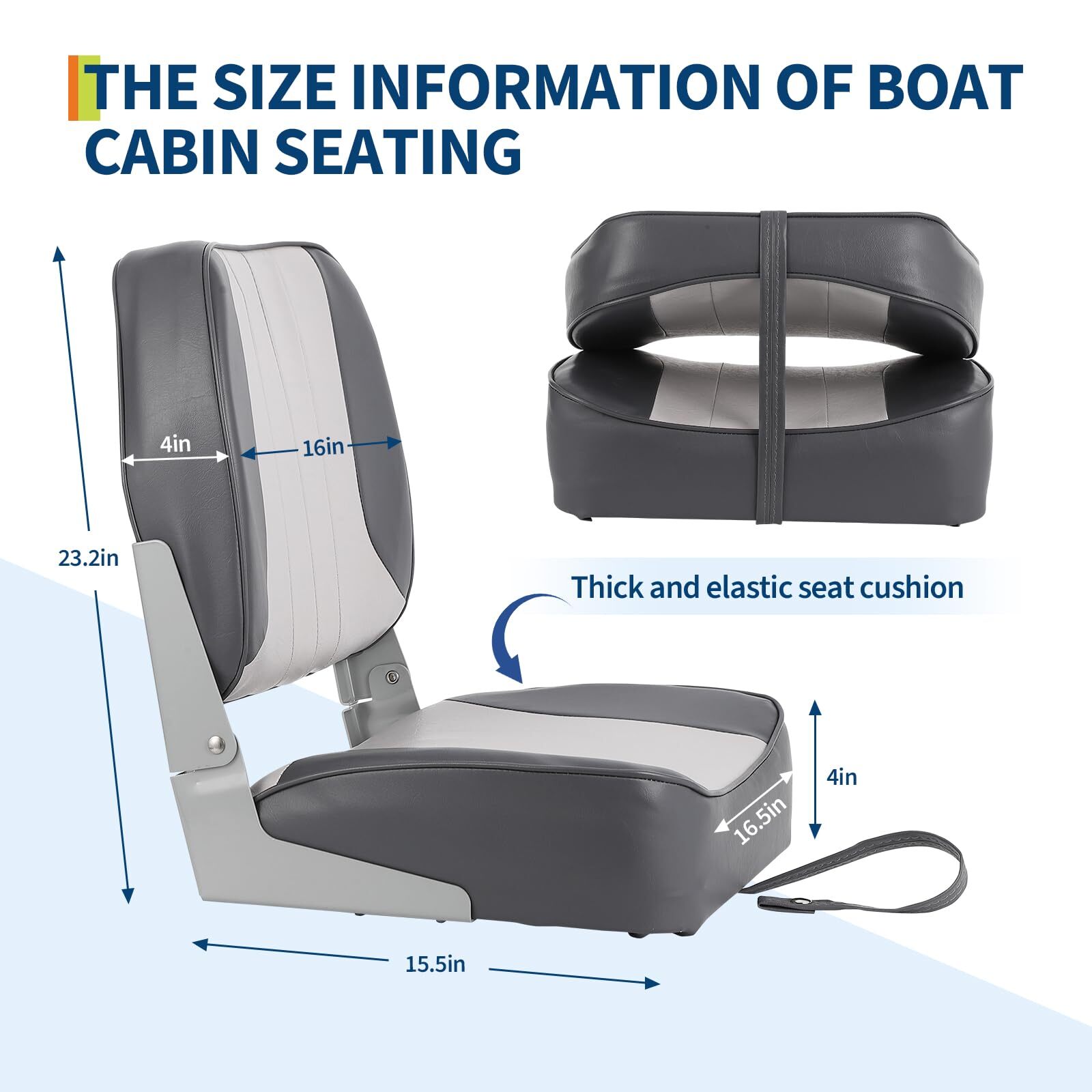 2-Pack Low Back Folding Boat Seats with Comfortable Sponge Padding for Fishing