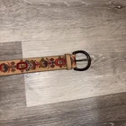 The Lucky Brand Floral Embroidered M Women’s Leather Belt is a vintage piece with a hippie and cowgirl character, perfect for adding a touch of retro style to any outfit. Made in India, the belt features intricate floral embroidery on leather material, with a colorful multicolor design and brass hardware accents. It is adjustable in size and has a belt width of 1.5 inches, making it a versatile accessory for women looking to add a bohemian or feminine touch to their wardrobe. The belt also includes a buckle closure and is a great addition for those who appreciate unique, handcrafted accessories.
