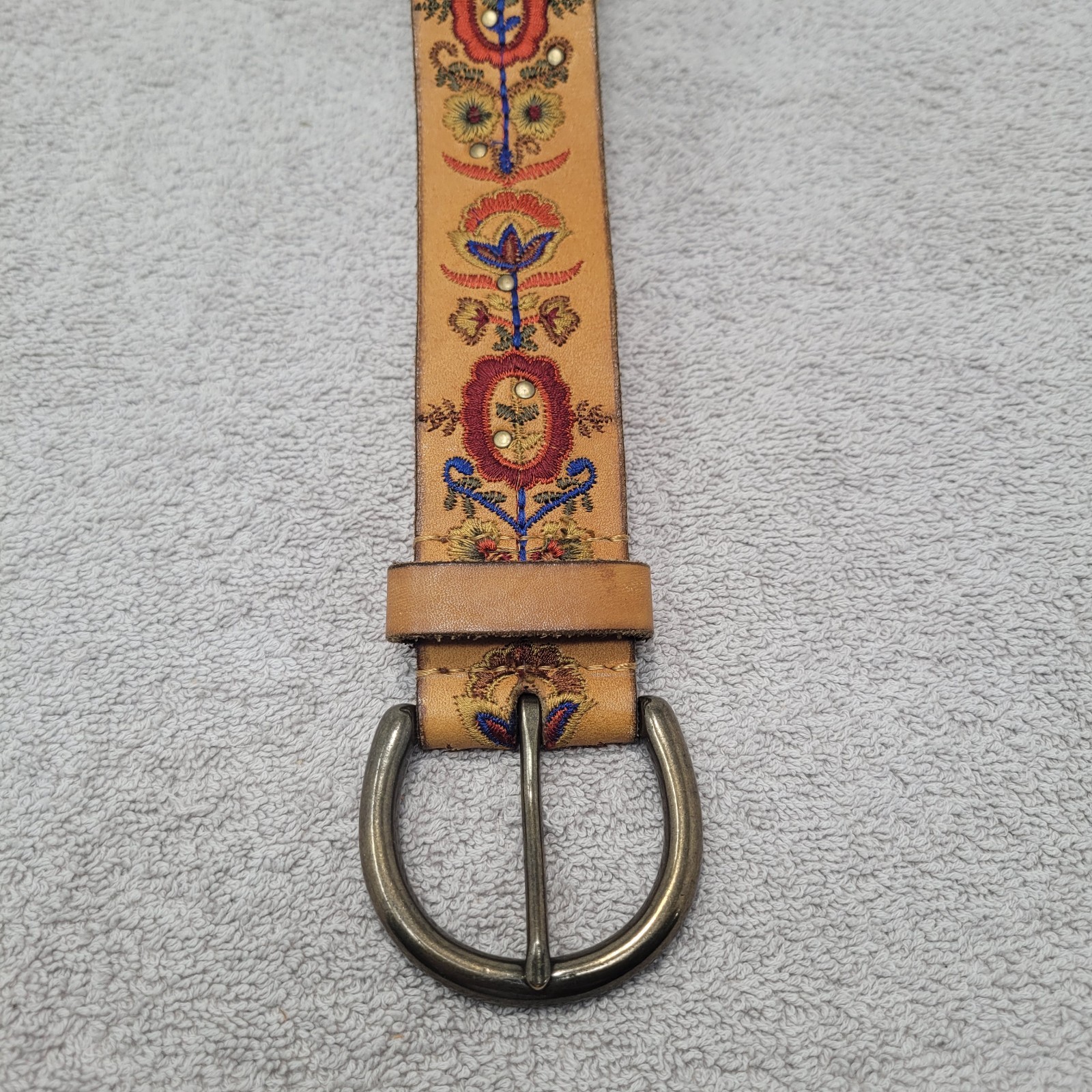 Lucky Brand Floral Embroidered Women’s Leather Belt XL. Belt is 46.5 inches long and 1.75 inches wide. Very nice condition. See photos.