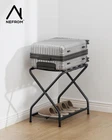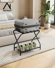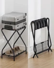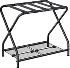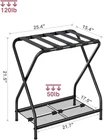 Luggage Rack, Foldable Suitcase Stand with Storage Shelf, Metal 1 Pack, Black Product Details Finish Type: Painted Shape: Rectangular Base Type: Leg Assembly Required: Yes Load Capacity: 120 Pounds Number of Levels: 2 Manufacturer: NEFROM Product Dimensions: 25.4 x 15.4 x 21.5 inches Item Weight: 6.9 pounds Finish types: Painted Batteries required: No Color: Black Material: Metal, Steel Tubes, Nylon Straps Brand: NEFROM Item Weight: 6.9 Pounds Item dimensions L x W x H: 25.4 x 15.4 x 21.5 inches 【STABLE UNDER SHELF】---The shelf on the bottom of the iron helps you to pack your luggage to put your shoes as well as other items on it and is more stable without dragging on the ground. 【CONVENIENT APPLICATION】---This suitcase stand makes it more comfortable to pack your own luggage on the go, avoid bending over to pack your luggage and make packing and unpacking easier while travelling. 【PORTABLE AND FOLDABLE】---This luggage stand can be folded, when not in use you can fold the rack to store it without taking up space, plastic adjustable feet to protect the floor from scratching. 【EASY TO ASSEMBLE】---Simple structure, detailed instructions, clear product number, so you can simply and quickly put the product in place. 【FIRM AND STABLE】---Nylon webbing straps are tied to the iron frame underneath to make the product more stable and won't be deformed during use. The luggage rack can withstand up to 120 pounds. NEFROM Luggage Rack, Foldable Suitcase Stand with Storage Shelf, Metal Luggage Holder for Guest Room, Bedroom, Hotel LR-BK-1