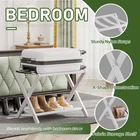 PACKING AND UNPACKING EASIER: With the help of this hotel-style luggage rack, the suitcase can be lifted to a comfortable height without having to be placed on the floor, so that you or your guests do not have to bend over and squat on the floor STURDY AND DURABLE: Made of thick bamboo, with X-shaped support structure, the suitcase holder can withstand the weight of heavy luggage. The top shelf is connected by 5 fixed heavy-duty durable nylon bands that can support up to 110 pounds; The lower shelves are made of heavy-duty durable nylon cloth and can hold up to 25 pounds ADDITIONAL LOWER SHELF: Not only does the 2-tier design provide a stronger structure and aesthetics, but the added lower shelf provides more storage space. Your guests can use them to store shoes, handbags, or other small items for easy access during their stay FORDABLE AND EASY TO STORE: When not in use, the suitcase stand conveniently folds down to 3.54" deep x 26.38" wide x 26.18" high to store it under the bed, in the closet, behind a door, or in a narrow corner. With standing dimensions of 17.33" deep x 26.38" wide x 20.47" high, it can accommodate 22", 24", or 26" suitcases ASSEMBLING IS A BREEZE: Comes with clear easy-to-follow assembly instructions and all the necessary hardware. You can easily assemble it in a short time without the need for special tools