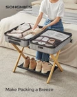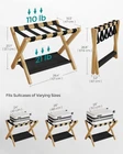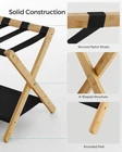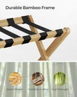 [Packing Made Easier] Make your guests feel at home with this convenient luggage rack. It elevates their suitcase to a comfortable height for packing and unpacking, saving you or your guests from bending down to the floor [Sturdy yet Stylish] The natural bamboo frame combined with robust nylon straps supports up to 110 lb on the top and 21 lb on the lower shelf; the natural beige finish adds a personal touch to bedrooms, guest rooms, or hotels [Wider and Foldable] This 26.4”D x 18.5”W x 20.1”H (67 x 47 x 51.1 cm) luggage rack, that’s wider than similar ones, can hold 24”, 26”, or 28” suitcases. It folds to a 26.4”D x 3.2”W x 26.6”H (67 x 8.1 x 67.6 cm) size for easy storage in closets or corners [Assembly Is a Breeze] Follow the instructions to connect the 4 corners of the structure with the included Allen key and only one type of screw so you can easily set up this suitcase stand. No more getting lost in nuts and bolts! [Convenient Lower Shelf] The lower storage shelf of this luggage rack for guest room keeps shoes or other items off the floor; the hook-and-loop fastener on it lets you roll up the fabric layer to keep it neat and clean when folded Base Type Leg Assembly Required Yes Load Capacity 131 lb Number of Levels 1 UPC 194343126166 Product Dimensions 26.38 x 18.5 x 20.12 inches Item Weight 5.06 pounds On Feb 5, 2025 at 03:14:40 PST, seller added the following information: