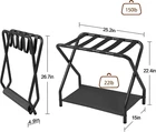 Store New Arrivals Add to Favorite View Feedback Contact Luggage Rack, Set of 2, Foldable Suitcase Stands for Guest Room, Metal Luggage Holder with Storage Shelf for Bedroom, Hotel, Easy Assemble, Black HLR02BK Description Item model number HLR Item dimensions L x W x H 25.2 x 15 x 22.4 inches Number of Levels 2 Assembly Required Yes Number of pieces 2 Batteries required No Product Dimensions 25.2 x 15 x 22.4 inches Material Metal Country of Origin China Load Capacity 150 Pounds Item Weight 9.81 pounds Color Black Shape Rectangular Base Type Leg Size Set of 2 Special Feature Lightweight, Space Saving Design, foladable, Easy Assembly Included Components Instruction tool, Instruction manual Keep Suitcases Off the Floor: This set of 2 luggage racks is perfect for travelers or guests, elevating your suitcase to prevent bending over or dirtying the bed, making packing easy and reducing travel prep time Sturdy and Stable: This luggage rack features a metal frame with nylon straps and fabric shelves. The durable iron frame and 5 nylon straps keep it secure during use, with a top shelf that holds 110 pounds and a bottom shelf that holds 22 pounds Space-Saving Design: These luggage racks fold flat for easy storage, taking minimal space in your guest or hotel room. When folded, they measure 25.2" L x 4.3" W x 22.4" H, fitting easily in a closet or under a bed, while unfolded, they accommodate 20", 24", and 26" suitcases Handy Assistant for Traveling Guests: This set of 2 foldable steel luggage racks enhances your guest room with extra storage while providing a comfortable packing experience. Older guests will particularly appreciate this thoughtful addition Easy to Assemble: All parts in the package are clearly numbered, with simple and clear instructions and Allen key, you can finish assembling the luggage holder in 15 minutes Extra Storage: Use the bottom shelf for shoes or travel essentials, adding convenience to your preparations. The adjustable feet allow the luggage rack to stabilize on uneven ground—just twist them for added support Product Description Luggage Rack for Guest Room Set of 2 Suitable for Almost All Sizes Luggage Don't worry about the size, luggage rack can accommodate 20", 22'', 24", 26", 28'' suitcases. Sturdy and Stable The top of the luggage rack can support luggage weighing up to 110 pounds. Extra Storage With the fabric storage shelf you can better organize the items you need for your trip in advance. 1 Wide Nylon Straps 2 X-Shaped Design 3 Fabric Storage Shelf More Luggage Racks Choice Chose More Home Furniture Add to Cart Add to Cart Add to Cart Add to Cart Add to Cart Add to Cart Add to Cart Customer Reviews 4.5 out of 5 stars 553 4.5 out of 5 stars 553 4.4 out of 5 stars 287 4.5 out of 5 stars 1,518 4.5 out of 5 stars 348 4.4 out of 5 stars 1,182 4.3 out of 5 stars 1,725 Price $29.99 $ 29 . 99 $29.99 $ 29 . 99 $45.99 $ 45 . 99 $59.99 $ 59 . 99 $55.99 $ 55 . 99 $69.99 $ 69 . 99 $59.99 $ 59 . 99 Color Black Grey Brown Brown Grey Grey Grey Number of Shelf 1 1 3 1 1 2 3 LED lights ✘ ✘ ✘ ✘ ✘ ✘ ✘ USB Port ✘ ✘ ✔ ✘ ✘ ✔ ✔ AC Outlets ✘ ✘ ✔ ✘ ✘ ✔ ✔ ABOUT US We offer the best prices around on high quality products. Our E-store includes media such as books, movies, music and games while offering electronics, toys, sporting apparel, clothing, tools, general home, garden items and more. SHIPPING We are always working hard to ensure your package arrives as soon as possible. Please understand that some factors like weather, high postal traffic, and the performance of shipping companies are outside of our control. We offer free shipping to the lower 48 states and ship within 2 business days of payment, usually sooner. We do not accept P.O. Boxes. Please provide a physical address. For shipping outside of the continental USA, we only use eBay's Global Shipping Program.The item is shipped to KY and then sent to the rest of the world. International customers are responsible for all duties and taxes. Continue to check out in order to calculate costs for shipping the item to your country. Messages regarding eBay's Global Shipping Program MUST be directed at eBay EXCLUSIVELY. RETURNS We offer a 30-Day Return Policy on items which you are not completely satisfied with. You have the option for a full-refund or an exchange of the item. No returns are available on items shipped outside of the USA. PAYMENT We accept PayPal. CONTACT US This page content is yet to come Please ad us to your favorite seller and visit again later Thank You CUSTOMER SATISFACTION We try our very best to make sure every customer is completely satisfied. If there's a problem, message us! We're happy to help. WE ACCEPT Copyright © 2021 AutoDS. | All Rights Reserved