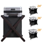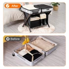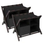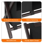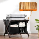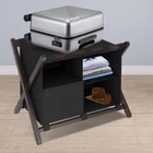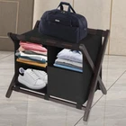 Saving my back and my luggage: Hotel style luggage rack keeps our luggage off the floor and keeps us from bending over to reach our belongings! No need to put our luggage on the bed either. Easy to assemble: You can assemble it yourself without extra tools! They include all the necessary accessories. Directions are clear and pictures help with assembly. Modern design:This luggage rack is not only sturdy and durable but also available in different colours, upgraded with 5 fixed heavy duty straps to prevent swaying. The brown colour has a natural and textured feel to it, giving a different feel to hotels, bedrooms and guest rooms. Laundry bag categorisation: Its upper compartment can accommodate suitcases of different sizes. The lower level also comes with a sorting laundry bag, which is convenient for you to sort your guests' clothes and shoes, your guests will love this unique design! What's in the Pack: A set of luggage racks can hold 24”, 26”, or 28” suitcases. ,Standing at 26.4“ L x 18.5” W x 20” H .