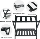 Store New Arrivals Add to Favorite View Feedback Contact Luggage Rack,Folding Suitcase Stand with Storage Shelf,Luggage Stand for Guest Room Bedroom and Hotel (Black) Description Item dimensions L x W x H 26.77 x 16.53 x 22.24 inches Number of Levels 1 Assembly Required No Batteries required No Product Dimensions 26.77 x 16.53 x 22.24 inches Material Bamboo Country of Origin China Item Weight 3.9 Kilograms Color black Shape Rectangular Base Type Leg Special Feature Folding Design, Storage Shelf Space Savings:Unfolded size of the luggage rack is 26.77”L x 16.53”W x 22.24”H, folded size is 26.77”L x 3.03”W x 26.92”H. the greatest advantage of the folding luggage rack in the home is its folding design, when not in use can be easily folded and stored in the closet, under the bed or any narrow space, does not take up valuable living space Durability and Stability: 5 heavy duty nylon straps.High-quality folding luggage racks are usually made of strong materials that are stable even when carrying heavy loads and last a long time Versatility : in addition to the luggage, the folding rack can be used to store shopping bags, sports equipment, seasonal clothing or other household items, very flexible. when needed, the folding rack can also be used as a temporary workbench or display stand to increase the flexibility of the home Easy to clean : The luggage rack surface is usually easy to wipe, also keep clean and sanitary Beautiful and harmonious : modern home folding luggage rack design fashion, some even integrated into the home decoration elements, can be well matched with other home furniture style, both practical and beautiful Overall, luggage racks are an essential piece of furniture for anyone who travels frequently or needs to store and organize luggage and bags Product Description X-shaped structure The X-shaped structure provides excellent stability as its cross design evenly distributes weight. sturdy bottom shelf The design of the base consider the distribution of support points to ensure even weight bearing and prevent local overloading. Safe round corners Rounded corners can reduce accidental injuries caused by sharp edges, especially at the corners of the luggage rack, where rounded corners can prevent passengers from being scratched when taking or placing luggage. Bedroom : A luggage rack in the bedroom can be used to store the luggage of overnight guests or as a temporary storage spot for personal clothing. Living Room : A luggage rack in a corner of the living room can serve as a decoration and also provide a convenient place for guests to store their handbags or coats. Foyer : The foyer is an ideal place for a luggage rack, acting as the first stop upon entering the home, making it convenient for storing and retrieving luggage. Luggage racks can be placed in various locations, depending on your home layout, space utilization needs, and personal preferences. Here are some common placement options: Entrance Hallway : Placing a luggage rack at the entrance makes it convenient to put down luggage immediately upon returning home and helps prevent dust from being brought indoors. Bedroom : A luggage rack in the bedroom can be used to store the luggage of overnight guests or as a temporary storage spot for personal clothing. Living Room : A luggage rack in a corner of the living room can serve as a decoration and also provide a convenient place for guests to store their handbags or coats. Foyer : The foyer is an ideal place for a luggage rack, acting as the first stop upon entering the home, making it convenient for storing and retrieving luggage. Children's Room : Placing a luggage rack in a children's room can teach children how to organize and manage their toys and belongings. Balcony or Terrace : If space permits, a luggage rack on the balcony or terrace can be used for drying clothes and also for storing some infrequently used items. When choosing the location for a luggage rack, consider its size, the flow of people in the home, and ease of use. Ensure that the chosen location is both practical and aesthetically pleasing, and can be integrated into your home's decorative style. ABOUT US We offer the best prices around on high quality products. Our E-store includes media such as books, movies, music and games while offering electronics, toys, sporting apparel, clothing, tools, general home, garden items and more. SHIPPING We are always working hard to ensure your package arrives as soon as possible. Please understand that some factors like weather, high postal traffic, and the performance of shipping companies are outside of our control. We offer free shipping to the lower 48 states and ship within 2 business days of payment, usually sooner. We do not accept P.O. Boxes. Please provide a physical address. For shipping outside of the continental USA, we only use eBay's Global Shipping Program.The item is shipped to KY and then sent to the rest of the world. International customers are responsible for all duties and taxes. Continue to check out in order to calculate costs for shipping the item to your country. Messages regarding eBay's Global Shipping Program MUST be directed at eBay EXCLUSIVELY. RETURNS We offer a 30-Day Return Policy on items which you are not completely satisfied with. You have the option for a full-refund or an exchange of the item. No returns are available on items shipped outside of the USA. PAYMENT We accept PayPal. CONTACT US This page content is yet to come Please ad us to your favorite seller and visit again later Thank You CUSTOMER SATISFACTION We try our very best to make sure every customer is completely satisfied. If there's a problem, message us! We're happy to help. WE ACCEPT Copyright © 2021 AutoDS. | All Rights Reserved