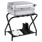 Luggage Rack,Pack of 2,Steel Folding Suitcase Stand with Storage Shelf for Be...