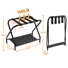 Saving my back and my luggage: Hotel style luggage rack keeps our luggage off the floor and keeps us from bending over to reach our belongings! No need to put our luggage on the bed either. Easy to assemble: You can assemble it yourself without extra tools! They include all the necessary accessories. Directions are clear and pictures help with assembly. Adjustable leg levelers: luggage racks have the adjustable leg levelers. You just twist the feet in or out to make the rack perfectly level so it doesn't rock. It can be used smoothly on uneven floors. Awesome addition for guest room: It was sturdy enough to hold a huge suitcase.Having the extra shelf allows storage for a tote bag or Shoes. The racks are very lightweight and fold up for easy, compact storage. What's in the Pack: A set of 1 steel luggage racks ,Standing at 26.2”L x 14.4”W x 20.5”H and folded to 26.2”L x 3.94”W x 24.4”H.