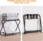 Saving my back and my luggage: Hotel style luggage rack keeps our luggage off the floor and keeps us from bending over to reach our belongings! No need to put our luggage on the bed either. Easy to assemble: You can assemble it yourself without extra tools! They include all the necessary accessories. Directions are clear and pictures help with assembly. Adjustable leg levelers: Heybly luggage racks have the adjustable leg levelers. You just twist the feet in or out to make the rack perfectly level so it doesn't rock. It can be used smoothly on uneven floors. Awesome addition for guest room: It was sturdy enough to hold a huge suitcase.Having the extra shelf allows storage for a tote bag or Shoes. The racks are very lightweight and fold up for easy, compact storage. What's in the Pack: A set of 1 steel luggage racks ,Standing at 26.2”L x 14.4”W x 20.5”H and folded to 26.2”L x 3.94”W x 24.4”H. Product Description We travel a lot! When we stay with our kids, the suitcase is always on the floor in the guest room. Not anymore! Hotel style luggage rack keeps our luggage off the floor and keeps us from bending over to reach our belongings! No need to put our luggage on the bed either... Bought the double pack because I put one in our guest room! Specifications: Color: Black/ Gray/ Brown Material: Steel Tubes, Nylon Straps Overall Size per Rack:22.8”€L x 11.8” W x 20.9”€H Folded Size per Rack: 22.8”€L x 3.94”€W x 24.8”€H. Total Product Weight: 7.73 lb/PCS (2.6 kg/PCS) Max. Static Weight Capacity per Rack: 100 lb (45.5 kg) Package Contents: 1 x Luggage Rack/2 x Luggage Rack 1 x Instructions