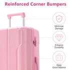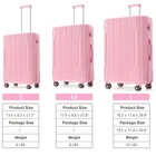 ABS Hard Shell: The material has excellent wear resistance and impact resistance, and is lightweight. Durable luggage can withstand transportation and keep your belongings safe. Lightweight luggage makes traveling effortless and enjoyable. Double Universal Wheels: Upgraded spinner wheels are quiet and easy to move, making it easy to navigate through airport halls and streets. Telescopic Handle: 3-level adjustable handle fits users of different heights. The 20" carry-on is ideal for weekend getaways, the 24" and 28" checked suitcases are perfect for long-distance travel. One set to meet all needs — the best choice for family travel. Corner Protectors: Reduce wear and tear on the suitcase caused by collisions and prolong the service life of the suitcase. Side Handle: 24-inch and 28-inch suitcases have TPE reinforced handles on the top and sides for easy carrying. 20" CARRY-ON/ 24" 28" CHECKED LUGGAGE Size: 20" 13.8 x 8.3 x 21.5" 24" 16.2 x 10.2 x 25.1" 28" 18.5 x 11.6 x 29.5" Sets can be stored inside each other. The carry-on size dimensions will meet most airline approved.