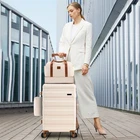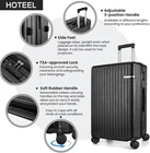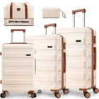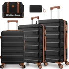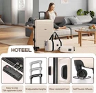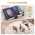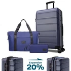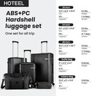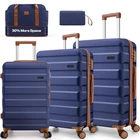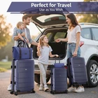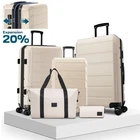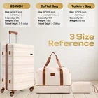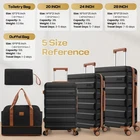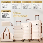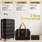 Product description Product Description [Multi-functional 5-Piece Travel Set] 5 piece luggage set features three expandable suitcases (20 inch carry-on, 24 inch and 28 inch checked luggage), each with 20% expansion capacity. Complete with a matching travel bag and toiletry bag, it's perfect for any journey. TSA-approved locks ensure secure travel and hassle-free security checks. [360° Spinner Wheels] Featuring multi-directional silent double wheels that rotate 360°, the spinner luggage set glides smoothly across various surfaces including slopes, cobblestones, and grass. The effortless maneuverability reduces physical strain, making it perfect for both business trips and leisure travel. [Adjustable Handle System] 3-step telescoping handle features a PC-reinforced grip for comfort and durability. Convenient handles on top and sides offer multiple carrying options, while four sturdy side feet keep thehard case suitcase stable when upright or sideways, protecting the shell from damage. The ergonomic design ensures easy handling throughout your journey. [Premium Materials] Crafted from durable ABS+PC material with a scratch-resistant textured surface, this hardcase luggage with spinner wheels maintains its elegant appearance over time. The spacious interior features partitions for efficient organization. Both the travel bag and toiletry bag are made of water-resistant, high-quality polyester fabric. [Quality Assurance] Our suitcase set has passed rigorous drop tests, ensuring excellent impact resistance. All components including the trolley handle, carrying handles, wheels, and straps are replaceable if damaged. Please don't hesitate to contact us with any questions or concerns about your product. Set Password Expandable Storage Capacity Luggage Case Details Easy-Carry Suitcase 20/24/28" Hard Shell Luggage Set Product Description 【Practical 5-in-1 Set】5 piece luggage set features a 20 inch carry on luggage, 24 inch/28 inch luggage, duffel bag and toiletry bag. Perfect for short trips, the carry-on meets airline requirements. The smooth-rolling dual wheels ensure quiet, effortless movement on various surfaces, making your journey more comfortable. TSA-approved locks ensure secure travel and hassle-free security checks. 【Hard Shell Carry On Luggage】Upgraded with premium ABS+PC hard shell material, the suitcase set 5 piece offers superior impact resistance and has passed rigorous drop tests. The textured surface prevents scratches, maintaining its sleek appearance. Inside, mesh compartments and cross straps keep your belongings organized and secure. 【3-stage Telescopic Handle】The handle can be adjusted according to your height. Ergonomic rubber handles on top and sides ensure comfortable grip and hand protection during transport. Side feet ensure stability when luggage is placed sideways, while integrated hooks let you hang shopping bags for added convenience during travel. 【Large Capacity Bag】This spacious duffel bag accommodates 2-3 days of clothing and features waterproof compartments for toiletries and liquids. The complementary toiletry bag helps organize personal care items for efficient travel. 【Replaceable parts】Components of hard luggage sets including telescopic handles, carry handles, wheels, and duffel bag straps are replaceable. Please contact us if any parts need replacement or if you have questions. Double Handle Design Handles on the top and sides of the suitcase make it easy to lift both horizontally and vertically. Comfort Puller Tie rod reinforced non-slip, give you a better experience. Side Support Silicone It serves to protect the luggage shell when security checks etc. require the case to be placed on its side. Spinner Wheels The double-wheel structure is more stable, making it less likely to tip over when pushed upright.