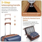 Top quality luggage sets, PC material for hardshell, which makes the luggage more durable, lighter and impact-resistant. 21in is best for carry on, 29in expands 20% for more spaces. Organized and Spacious Interior. The fully lined luggage includes a handy divider and an interior organizer with zippered pocket for smaller items. Organized and Spacious Interior. The fully lined luggage includes a handy divider and an interior organizer with zippered pocket for smaller items. Adjustable 3-level aluminum telescoping handle allows you to quickly maneuver in tight spaces and it's sturdier than most of the telescoping handle on the market. The top/side soft reinforced grip handles for easy carrying when in a hurry, or it can be really handy when lifting the suitcase with heavy weight. Side-mounted TSA LOCK with smooth YKK zipper act to deter theft, ensuring that only you or a TSA agent have easy access to your belongings when traveling, added security and convenience. Multi-directional spinner wheels to provide 360° effortless mobility and ease on traveler's wrist, re-engineered lightweight.