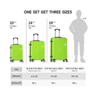 Luggage Sets ABS 3 Piece Set Lightweight Suitcase Sets with Spinner Wheels TSA Lock,Apple Green,3 Piece Set (20/24/28) Description Features: CARRY ON LUGGAGE SET:The impact-resistant design of our luggage carry on suitcase and cosmetic case include beveled sides to deflect hard knocks and a brushed finish that reduces scratches,enjoy hassle-free travel with carry-on luggage that works for you. SAFE TSA LOCK:The upgraded TSA customs lock is installed on the side of the trunk,and the combination lock is TSA certified,allowing only TSA agents to inspect your luggage without damaging the lock. 360ROTATING WHEEL:4 double 360spinner wheels,mute and smooth multi-directional rotating spinner wheels,according to different groups of people, 3-step telescopic design,and the applicable height of the user can be adjusted according to the gear. WHAT IN YOUR PACKAGE:Suitcase set consist of 20" suitcase suitable for carrying onto the plane,24" suitcase for checking in,28" suitcase for consignment,best choice for long-term travels and business trips. PERFECT CUSTOMER SERVICE:We will try our best to provide you the best service,you will get reply within 24 hours. Product Details: Product Dimensions: 20 x 11 x 30 inches Item Weight: 23 pounds Department: Unisex Adult Manufacturer: Strenforce Country of Origin: China Item model number: scase008 Capacity: 179 Liters Item Weight: 23 Pounds Capacity Total: 179 Liters Shipping Most orders will be shipped within 1 business days once we receive your payment. Except on weekend or public holidays. A shipping notification will be emailed to you once your order has been shipped. International shipping via eBay Global Shipping Program. No shipping to AK, HI, PR, APO/FPO, US Protectorates and PO Box. Payment We Accept Payment Via PayPal and All Major Credit Cards. Return We stand behind our products. Items can be returned for exchange or full refund within 30 days from the date you receive your merchandise. Return shipping is the responsibility of buyer unless the return is a result of our mistake (i.e., your receive the wrong item). We will pay for shipping replacement back to you if an exchange of the same product is requested. Contact us If you have any questions please contact us. We respond within 1 business day or less.