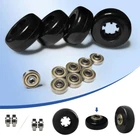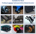 Full Set Suitcase Wheels Repair Kit for Fix at Home-Freely Assembled High Carben Steel Ball Bearings Total Width 0.82-0.86in,Mini Hacksaw to Cutoff Old Rivet,3 Size Wheels Axles,(OD=0.24in/6mm,L=1.2in/30mm,1.4in/35mm,2.4in/60mm)Included Updated Kits Support Single and Dual Wheels-For Single Wheels,Wheel-housing Inner Width(W) 0.83in/21mm≤W≤1.3inch/33mm;For Dual Wheels,Axle Slot Length(L) 0.4in/10mm≤L≤0.7inch/18mm(Spare shaft spacer used to fill axle slot if needed) Grip Smooth Rolling Elastic Mute Bearings Wheels-Inline Skating Roller Level 82-85A Hardness PU Rubber Perfusion Built in ABEC-7 Ball Bearings,Strong load-bearing,Sturty and Wear Resistant Lots of Replace Case Reused Longer Time Cost Saving-Suitable for Most Trolley/Luggage suitcase/Draw bar bag/Travel box with Damaged Wheels/Jammed Roller/Rubber Worn Caster Enjoy the DIY of Repairing Broken Travel Box Caster-Drill out or Saw off the Old Axle Rivet,Lock New Wheels with the Anti-loosening Coatings Axle Screws and Spare Washers(where needed) Product Description Greetings from ASUNTOM, for Your Trust, We Keep on Moving, at Day and Night, as a Whale to the Deep Sea! For Single Wheels Install, Please Confirm Your Wheel-housing Inner Width(W) is Range from 0.83in/21mm to 1.3in/33mm For Dual Wheels Install, Please Confirm Your Axle Slot Length(L) is Range from 0.4in/10mm to 0.7in/18mm Please Allow 0.05in/1mm Manual Measurement Error, and Use the Spare Washers to Fill the Gaps where Needed Please Understand Kindly that Replacement Wheel Kit is NOT Original Parts-Just for Wheel Repair or Upgrade. Pls Allow Reasonable Variations in Size and Appearance. 3 Length Axles and 3 Size Spacers/Washers for More Fix Needs, Support Single & Dual Wheel, Compatible with Dia. 6mm & 8mm Axle Slot Strong Grip PU Rubber Wheels,2 Ball Bearings Freely Assembled for Adjustable Width Inline Skating Roller 82-85A Hardness, Sturdy and Wear Resistant Mini Hacksaw with 2 Blades to Cut off Old Rivet, Gift Pull Can Mark your Bag Package Lists: 4 X PU Rubber Wheel 8 X Carbon Steel Ball Bearing 4 X Axle 1.2in/30mm Length 4 X Axle 1.4in/35mm Length 2 X Axle 2.4in/60mm Length 2 X Aluminum Axle Shaft Spacer 4 X Iron Axle Shaft Spacer 8 X Stainless Steel Washer 5 X Locking Screw (Extra 1 for Backup) 2 X Allen-Cross Wrench 1 X Mini Hacksaw with 2 Blade 2 X Zipper Pulls 1 X Manual