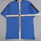 Lululemon Shirt Mens Large Blue Short Sleeve Athletic Gym Training Tee Running Pre-owned Lululemon shirt with light overall wash wear and fabric softening from prior use. Fabric, seams, and printed logos are clean and intact with no holes, snags, or stains. Neckline, sleeves, and hem are free of damage or stretching. Brand: Lululemon. Style: Mens short sleeve athletic shirt in a regular-fit performance silhouette. Color: Solid blue body with darker blue/charcoal contrast stripe panels along the top of each shoulder. Estimated Size: Mens Large no size dot found. Material: Smooth lightweight performance knit fabric designed for breathable, moisture-wicking comfort (exact fiber content tag not shown). Details: Crew neckline with small V-shaped stitch detail at the front, short sleeves with contrast shoulder overlays, straight hem, and comfortable flat-seamed construction suitable for active wear. Branding and accents: Small triple-bar detail at the front left shoulder and reflective Lululemon logo printed at the upper back. Performance/Activity: Ideal for running, gym workouts, training sessions, yoga, and general athletic or casual wear. Care: Follow garment care tag instructions for washing and drying. Special notes: Pre-owned shirt with light wash wear from normal use; please review all photos for exact color and condition before purchase. 24887 Measurements: Previous washings may change sizing on the tag. Refer to photos above for all measurements. Compare our measurements to one of your favorite garments. Measurements are approximate. All items are bagged and sealed after being photographed, then stored in a smoke free environment. Washed per eBay standards. I carefully package and ship daily. Contact me with any questions. Thanks
