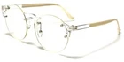 Rimless Round Unisex Glasses For a fashionable and trendy pair of clear lens glasses that will look amazing no matter what the outfit or occasion, these rimless round unisex glasses are on-point. The plastic arms will sit comfortably around the face and the rimless design suits every face shape. Shape: Rimless, Round Material: Plastic Lens: Clear Protection: UV400 Lens Width: 57 mm Bridge Width: 19 mm Height: 54 mm Temple Length: 137 mm