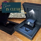 Leather Exterior With Velvet Interior WOW HER! Go the extra step to making your engagement perfect with this elegant engagement ring box that fits virtually any ring up to 3mm wide band 💎 LED LIGHT makes this proposal ring box perfect for evening time or low light setting. The ring box with light is scientifically designed to enhance the sparkle of your diamond engagement ring POP UP DISPLAY Ring pocket inside the engagement ring boxes interior is lifted up as the box opens making a stunning presentation. It makes this ring box for proposal the best choice ADDED SPARKLE This lighted ring box with light adds sparkle and wow to your engagement. A perfect way to add to the eye-catching appeal of a diamond or gemstone. The added sparkle will be worthy of a fairytale proposal KEEPSAKE This black lighted luxury ring case box can be used for years to come as a keepsake wedding ring box Product Description Make your perfect day even BETTER! Don't settle for dull ring box on your special day! Upgrade your proposal to the Treasure Light luxury ring box Brilliant Color Scientifically created light is designed to enhance the sparkle of your diamond engagement ring. This luxury box will make any type of ring dazzle. Slim Design Sleekly designed at 3"x3"x1" (80mmx27mm) the smooth black proposal box can remain hidden until you pop the question! Slim design is packing a punch with pop up design inside. More Sparkle This illuminating ring box adds sparkle and wow to your engagement. A perfect way to add to the eye catching appeal of a diamond or gemstone. The added sparkle will be worthy of a fairytale proposal Pop Up Display Ring pocket inside the luxury velvet box interior is lifted up as the box opens and the LED illuminates your engagement ring. POP UP DISPLAY is sure to impress your bride to be