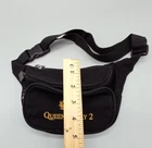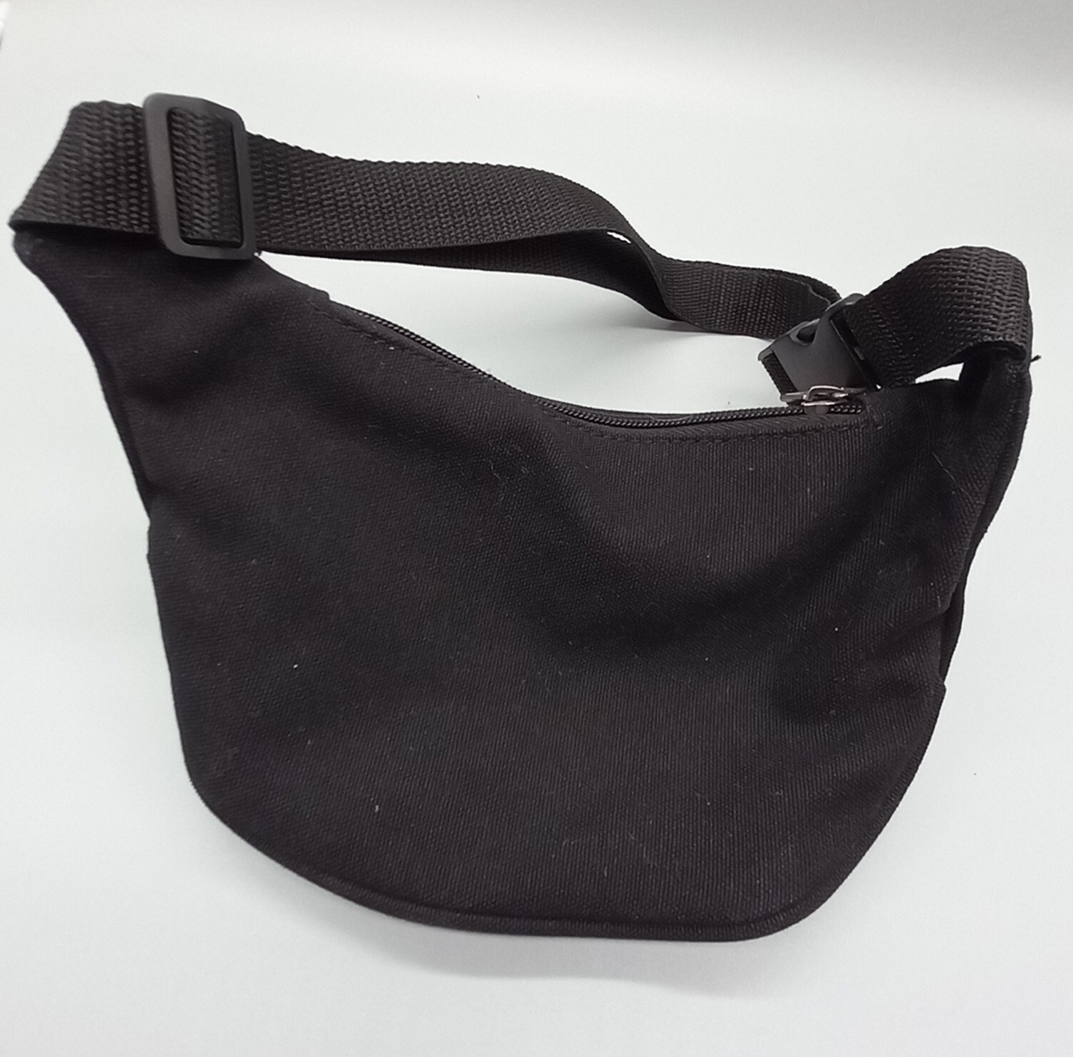 This travel fanny pack is the perfect accessory for your next adventure. With three pockets, and a adjustable waist belt you can easily store all of your essentials and keep them within reach. The black color and small size make it a stylish and practical addition to any outfit. Whether you're cruising on the Queen Mary 2 or exploring a foreign country, this fanny pack is sure to be your go-to companion. It is made with high-quality materials and designed to withstand the wear and tear of everyday use. Black cotton canvas.