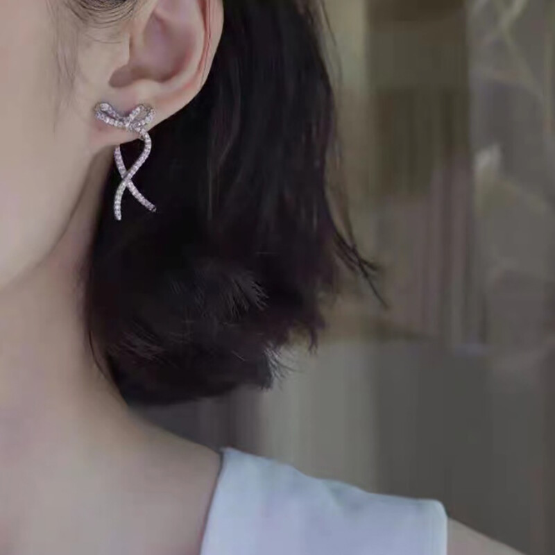 Korean Style Sweet Bowknot Zircon Stud Earrings Trendy Crystal Jewelry CR