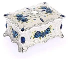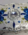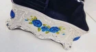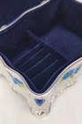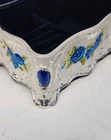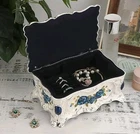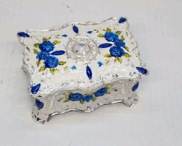 NEW .This luxury vintage rectangle metal alloy jewelry box is a perfect organizer for storing and displaying your jewelry. With a medium size and three compartments, it is ideal for keeping your rings neatly arranged. The box features a durable construction with a lacquered finish and metallic blue roses accent, giving it a stylish and elegant look. The interior is lined with velvet for added luxury, making it a great gift for special occasions like weddings, birthdays, or Valentine's Day. Designed for women and girls, this jewelry storage box is both practical and fashionable.