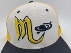 Has some wear underneath the brim as seen in photos. M Saturn Planet Logo New Era 59Fifty Fitted 7 Hat Cap Baseball White Yellow Blue. EACH ADDITIONAL HAT PURCHASED IS ONLY $1 ADDED SHIPPING!