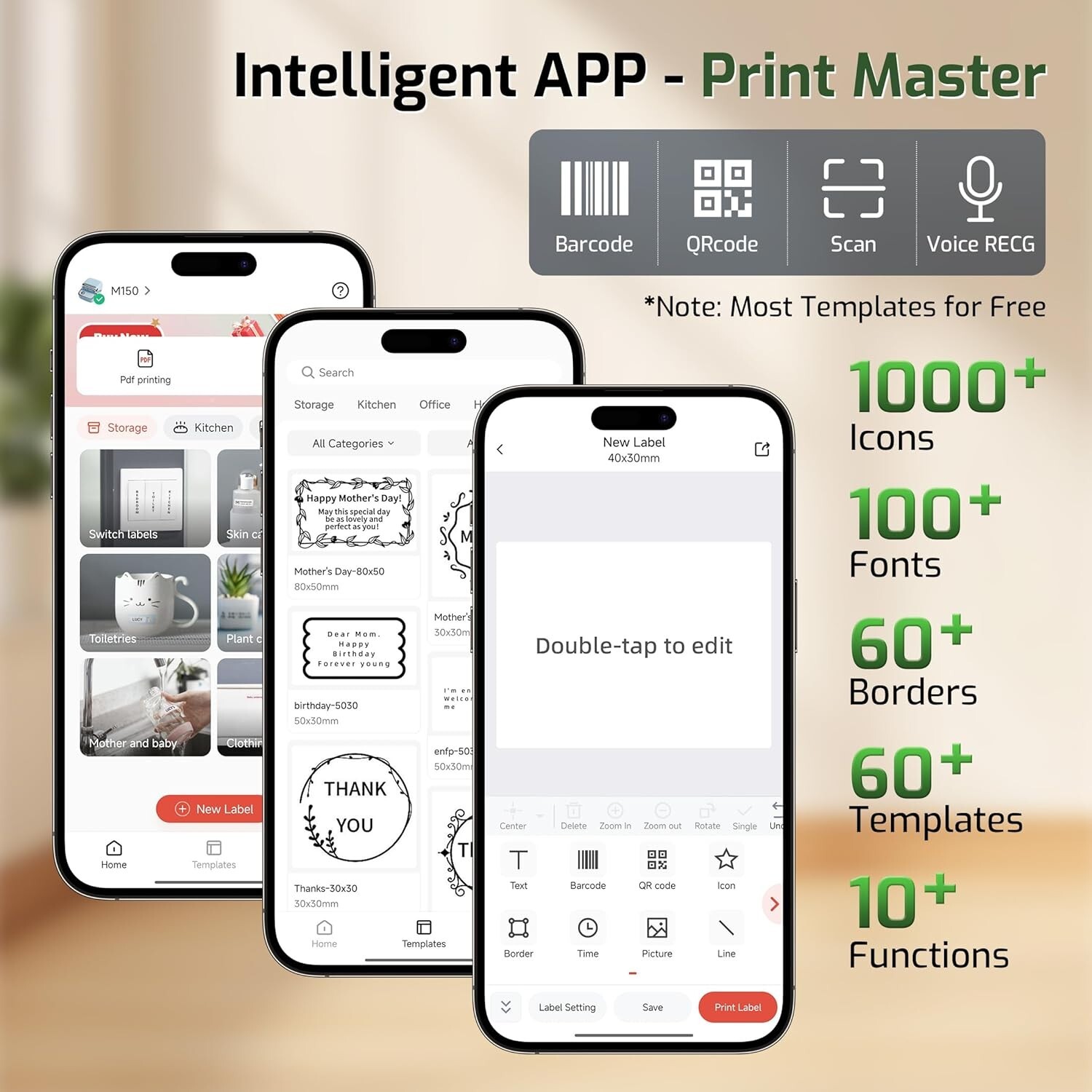 M150 Label Maker, Upgraded Bluetooth Thermal Label Printer, 2" Portable Sticker Priner for Home Use & Small Business, Compatible with , PC & Tablet, with 1 Roll Free Thermal Label Paper 2025 Label Maker with Tape: M150 label maker can print 4200 thermal labels on a single charge, with a printing speed of 30-50mm per second. It also features an automatic paper rewind function, ensuring the first label is never wasted. Not just a mini label maker, it also serves as a cute retro decoration Printing Width: M150 Bluetooth label printer can print thermal labels with a width of "" (20-50mm). M150 barcode sticker printer can use white, col or, and transparent labels. You can use the functions of Text, Images, Excel, QR Code, and Barcode in the Print Master App to freely create food, , jars, name, office labels and etc. (Attention: M150 Sticker Maker cannot print 4" x 6" labels! ) Powerful APP - Print Master: M150 label maker printer comes with a multifunctional APP. It offers powerful features such as barcode, QR code generation, text input, image capture, voice recognition, PDF and Excel printing, and batch printing. Create various labels from over 100 fonts, 300 templates, and 1000 symbols available Portable & Small: M150 Thermal Label Maker is a 2-inch handheld label printer. The product dimensions are x x inches. This portable label printer weighs only 308g, making it effortless to carry around. With the M150 thermal barcode label printer, enjoy the convenience of printing labels anytime, anywhere Strong Compatibility: M150 wireless label maker is compatible with smarts, tablets (iOS and Android systems), and computers (Windows, macOS, Linux). To use it with a smart or tablet, download the “Print Master” App from Google Play or App Store, then print by connecting via Bluetooth. For use with a computer, visit the official website to download drivers and the “Labelife” app, then connect and print using a USB data cable