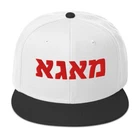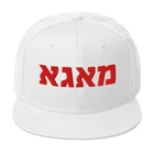 MAGA in Hebrew Snapback Hat Support President Donald J Trump This is the snapback of your dreams! It's structured and high-profile, with a flat visor and a subtle grey under visor. • 85% acrylic, 15% wool • Structured, 6-panel, high-profile • Plastic snap closure • Grey under visor • Head circumference: 22″–24″ (55–60 cm) Size guide A (inches) B (inches) C (inches) D (inches) One size 20 ½-24 ¼ 4 ½ 2 ⅝ 7 ⅛ A (cm) B (cm) C (cm) D (cm) One size 52-61.5 11.5 6.7 18