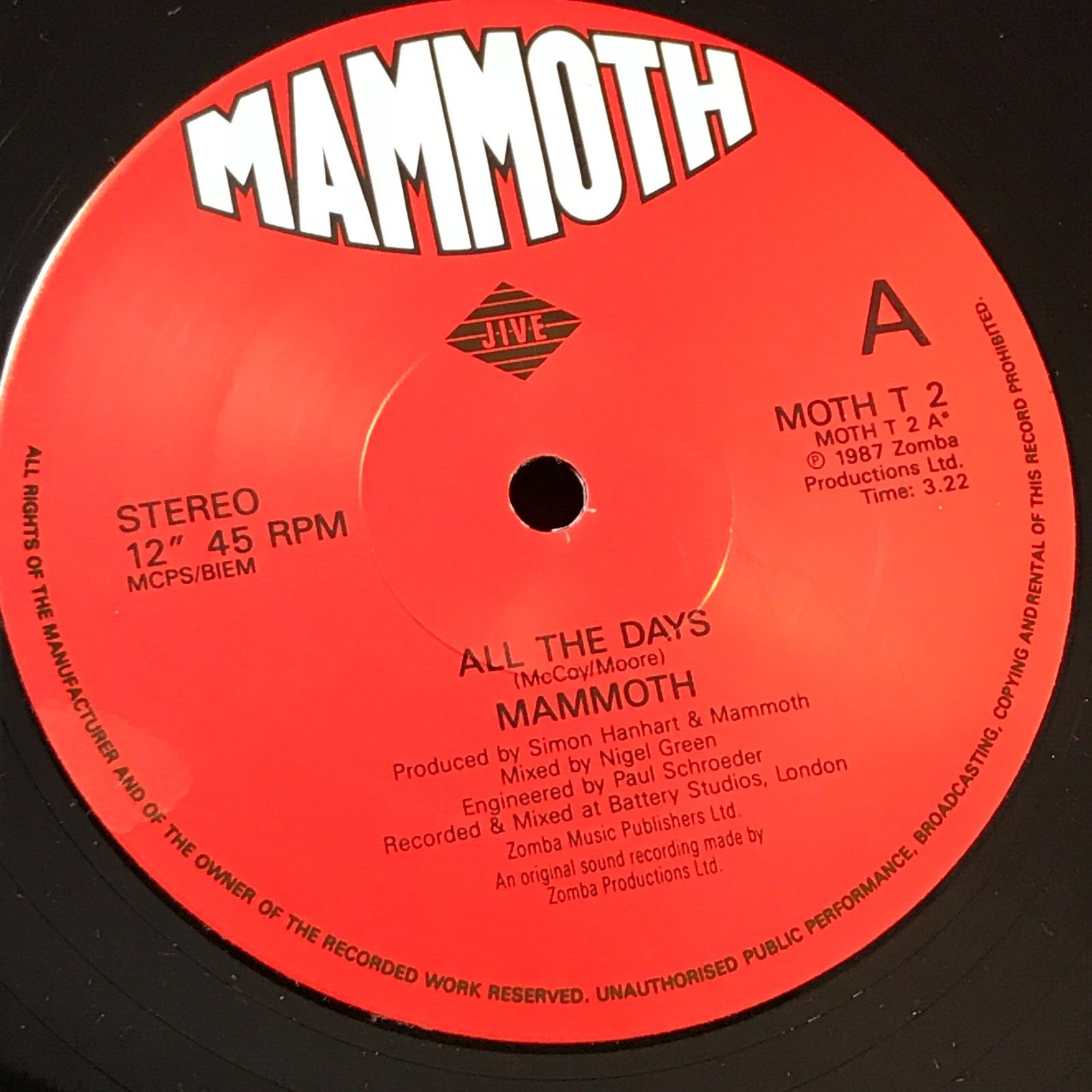 MAMMOTH All The Days - 1987 UK 3-track 12" vinyl single, also including Fatman and Bet You Wish, MOTHT2 Record Condition : Excellent Sleeve : Minor shelfwear (see photo) Please check out our other items !