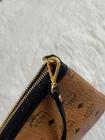 The MCM Liz Large Reversible Brown Shopper Tote Bag It is a stylish and practical accessory for women on the go. Made of leather with a canvas lining, this rectangular-shaped bag features a monogram pattern and gold-plated hardware. The reversible design allows for versatile styling options, while the brown handle/strap adds a touch of sophistication. Perfect for casual occasions, it offers plenty of space with dimensions of 17 3/4" width, 13 1/2" height, and 7 1/2" depth. The iconic MCM branding and large size make this tote bag a must-have for any fashion-forward woman.