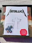 METALLICA MASTER OF PUPPETS DELUXE BOX SET #15656 OF 25,000 Contents: Remastered Master of Puppets LP on 180 Gram Vinyl Creeping Death EP Picture Disc Double Vinyl Live LP Aragon Ballroom Chicago 1986 CD 1: Master of Puppets Remastered (MISSING) CD 2: Interviews CD 3: Interviews CD 4: Rough Mixes from the Vault CD 5: Riffs, Demos and Outtakes CD 6: Riffs, Demos and Outtakes CD 7: Live at he Meadowlands 1986 CD 8: Live at the Hampton Coliseum 1986 CD 9: Jason's Audition & Live at Reseda, CA 1986 CD 10: Live at Essen, West Germany 1987 Cassette Tape: Live at Stockholm, Sweden 1986 DVD 1: Live at Detroit, MI 1986 & MTV Heavy Metal Mania DVD 2: Live at Roskilde Festival 1986 108-Page Hardcover Book (MISSING) Lyric Folder Pushead Print Six Buttons Like new condition all of the vinyl and CDs seem to be in unplayed condition. Has always been stored vertically to prevent damage. THE Master Of Puppets Remastered CD is missing and The 108 page hardcover book is missing.