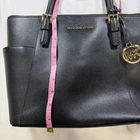 This Michael Kors Black Leather Tote Bag is a stylish and practical accessory for women. Made from high-quality leather, this tote is perfect for carrying everyday essentials in a sleek and sophisticated manner. The black color adds a touch of elegance to any outfit, making it a versatile option for various occasions. With the renowned Michael Kors brand name, you can trust the quality and design of this chic handbag.