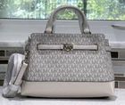 MICHAEL Michael Kors Michael Kors Reed Small Center Zip Belted Satchel Guaranteed Authentic or Your Money Back Brand new with Tag and Care Card~Retails for $498 ~~FA ST SHIPPING!!~~ Purse Features: Approximate measurements: 9" across the top, 11" across the bottom (L) x 8" (H) x 5" (D) Beautiful MK Light Cream Signature with Light Cream Smooth Leather Accents Gold tone hardware Dual rolled handles with 3.5" drop PLUS additional Detachable and Adjustable Crossbody Shoulder Strap Zipper and Open closure MK Signature Initials on Front of Bag Belted Detailing on Front Interior has 3 compartments Center compartment is lined in MK Signature Fabric and has a zippered closure PLUS a zipper pocket then there are 2 side slip compartments which are unlined. Approximate measurements: 9" across the top, 11" across the bottom (L) x 8" (H) x 5" (D) BUY WITH CONFIDENCE~CHECK OUT OUR AWESOME FEEDBACK RATING AND REVIEWS!! My ref~120524-68-16108 Visit My eBay Store We have many "Buy It Now" purses and accessories in dozens of styles, colors and sizes, in stock and ready for immediate purchase in our Ebay store. I am not associated with above designer in any way. I just love the beauty, style and quality of their products. • PayPal Only PLEASE MAKE PAYMENT WITHIN 3 DAYS OF AUCTION. I WILL FILE A NON-PAYING BIDDER ALERT FOR NONPAYMENT! I ship 99% of All items within 1 business day once payment is received. I will keep you updated with emails on the status of your item at the end of the auction. I offer discounted shipping for multiple items so please Visit My Store for the Matching Wallet, Purse or Accessory. -regular shipping cost for the item of highest shipping and 50% off the shipping cost of each additional item purchased. Shipping is very fast! All COACH purses and handbags will be shipped by Priority Mail with Delivery Confirmation included in the Shipping Price. Smaller items, weighing less than 13 oz., may be shipped by first class mail. All items are from a smoke free home. All items are Guaranteed Authentic or your money back. I personally buy all items myself from authorized COACH stores, COACH factory stores or Upscale department stores. You will not be disappointed. PLEASE ...serious bidders ONLY. Please double check the measurements given for each item, so you will accurately understand the size of your purchase before bidding. If you are not 100% satisfied with your purchase. Refunds are available (less shipping costs and a 10% restocking fee). This fee helps to keep my prices as low as possible and cover some of the seller fees incurred. You must contact me within 2 days of receipt of item to make return arrangements. Items must be returned unused, with tags attached, insured and within 7 days of receipt. Please think of me as Your Personal Shopper for Designer items. I love to shop and I'm always looking for the latest styles at the absolute best price. Let me do the driving, burn the gas and walk the pavement from store to store looking for the best deals to pass on to you. Check out my store for more beautiful, authentic Coach handbags, purses, wallets and accessories at the LOWEST prices. Please contact me with any questions that you may have. I'll be happy to clarify any information presented. Track Page Views With Auctiva's FREE Counter Shipping All Day!! Items will be Shipped on the Same Day if Purchased by 4:00pm EST. All Items Shipped by Priority Mail!!