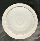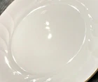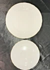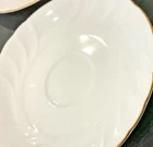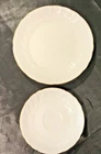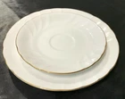 Mikasa Japan Wedding Band gold lot of 2 pieces: 8-1/4" salad plate and 6-1/4" saucer. Pattern features all white porcelain with swirled rim and gold trimmed rim. For replacement or adding to your Mikasa Wedding Band set.