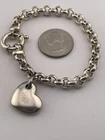 MILOR 925 STERLING SILVER 7.3MM ROLO CHAIN PUFFY HEART CHARM BRACELET 7" 446 25.16G ****************************** Thank you for your interest in our jewelry. We'd like to introduce ourselves. We are just a retired couple who love matching our customers with great jewelry. We're not professional jewelers. To have the best shopping experience we like to recommend the following: Please measure your hand, wrist, finger or neck to ensure the best fit. We can use your measurements to help with sizing. Please ask all the questions you want. We know some stuff and, if we don't, we'll do the research. We like to learn too. More Stuff: If an item is described as "gold over 925 sterling silver" this means it is gold vermeil. Vermeil is the process by which a layer of gold (usually 14k or 18k) is bonded to sterling silver. We only clean with gentle soap and warm water to avoid damage. The items we sell may be new or pre-owned and may have normal wear, slight damage, and/or tarnish. We make every effort to ensure the items we sell are as described. This includes testing to confirm metal purity if the item isn't marked, and testing for gemstone identity. We try to put measurements in the jewelry description and include a photo of each piece with a U.S. quarter (25mm).