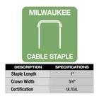 MILWAUKEE M12 Cordless Cable Stapler Kit with 2.0Ah Battery, Charger and Bag W/1 In. Insulated Cable Staples for 600 per Box 3-Pk Sinks staples to the proper depth for UL/CUL approved NM-B cables Compact size eliminates majority of manual staple installation Nail Gun - Part of the M12 System, featuring over 125+ tools The Milwaukee M12 Cable Stapler delivers unmatched stapling performance in the most compact battery-powered solution leading to a faster, more efficient rough-in process. The compact, lightweight design provides users with access to tight stud bays and improved ergonomics when stapling overhead or during difficult-to-reach situations. Moveable cable guides ensure proper alignment and the coil-spring mechanism consistently sinks the staples to the appropriate depth when fastening NM-B Sheathed Cable (14, 12, 10 AWG) and low voltage cables, supporting peak stapling productivity. Only compatible with the Milwaukee 1 in. insulated staples (sold separately), the M12 Cable Stapler gives the user the run-time needed to sink up to 1,200 staples on a fully charged M12 CP2.0ah battery. Coil-spring mechanism consistently sinks the staples to the appropriate depth Compact size eliminates the majority of manual staple installation needed for NM-B and low voltage cables Improves speed of staple installation, completing rough-ins 2x faster than when using a hammer Moveable cable guides Staple viewing window Battery fuel gauge Reversible belt hook LED work light Dry fire lock out 2-finger trigger Compatible with Milwaukee 1 in. insulated cable staples 45 staple magazine capacity Fires 1,200 staples per charged M12 CP2.0 battery Part of the M12 system, featuring over 125+ tools Fits all M12 batteries Includes: one M12 cable stapler, one M12 CP2.0ah battery, one M12 charger, 1 contractor bag, 3-pack insulated cable staples Fastener Type Staple Package Quantity 1800 Returnable 90-Day Staple Leg Length 1 Assembled Depth (in) 6.5 in Assembled Height (in) 11.6 in Assembled Width (in) 2.65 in Crown Size 0.75 in 2.65 inches x 6.5 inches x 11.6 inches. Weight: 0.0 grams