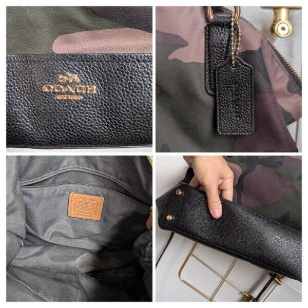 MINT Coach Camo Tote bag purse Description Hi, Welcome, thanks for taking the time to look at my auction!! I have dogs ~~~~ NON-Smoking Home PLEASE Read Detailed Measurements listed below.....PLEASE......PLEASE & Compare to your favorite "LIKE" clothing Item! I Support the Troops & Pray for you ~ THANK YOU! COLORS ON MONITORS MAY DISPLAY SHADES DIFFERENTLY ALL ITEMS ARE MINT LIKE NEW CONDITION UNLESS STATED OTHERWISE - NO HOLES, STAINS or WEAR PATTERNS MINT Condition 15x12x3 Hello, I have been selling here on Ebay for 23 Years to supplement my husbands income while Homeschooling our 5 children. We are Veterans and love supporting and praying for our troops. I have dogs, Hair floats and can be hard to avoid however I keep the clothes in a closet, in a room the dogs are not allowed. I accept whatever payment methods Ebay accepts LOL, Not really in control there! I ship Monday Through Friday, obviously excluding holidays and I only charge what the USPS charges me. I weigh everything with a postal scale and so the price you see for shipping is exactly the price you would pay if shipping something yourself, I REFUND ALL OVERAGES. I accept returns as I am human and we all make mistakes but I make sure to provide very detailed measurements that should prevent a return due to being too big or too small SO PLEASE COMPARE MY DETAILED MEASUREMENTS WITH YOUR FAVORITE "LIKE" ITEM TO ENSURE IT FITS, JUST BECAUSE YOU OWN SAME SIZE/BRAND DOESN'T MEAN THEIR QUALITY CONTROL WAS ON POINT! THIS WILL SAVE US BOTH TIME AND MONEY. Thank you for considering purchasing from me and helping me provide for my family. Blessings Jen See my other listings for more great items! Payment I accept whatever payment methods Ebay accepts. Shipping I ship all items within 3 days of receipt of payment. Being a Stay At Home Mom (SAHM)of 4 boys and finally that 1 girl, who I homeschool can mean that my time is not always my own but I do try to ship the same day as payment is received. I LOVE to COMBINE shipping BUT ITS USUALLY BY REFUND OF ANY OVERAGES and strive to ship things in the least expensive way possible which is usually USPS. Delivery Confirmation is included in your shipping charges. txzj pxzj229 txzj-4 txzj1