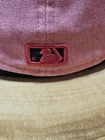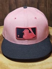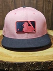 Add this rare MLB Logo Man New Era 59 Fifty Fitted Hat to your collection! This hat is perfect for any occasion, whether it's a baseball game, travel, party/cocktail, casual, formal, workwear, or business. It features a solid pattern and a flat brim, making it a trendy and stylish accessory for any fan of streetwear, MLB baseball, or the 80s. The hat is available in size 7 5/8 and has a fitted design, ensuring a comfortable fit for all head sizes. Its vibrant pink color makes it a statement piece and a must-have for any hat collector. Get your hands on this unique and versatile hat today!