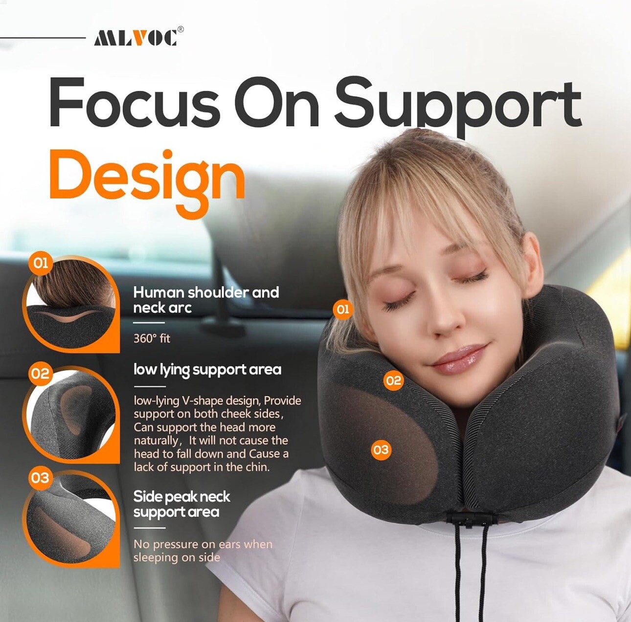 The MLVOC Travel Pillow is made of 100% Pure Memory Foam in a comfortable and breathable design. It is a standard size neck pillow in a stylish gray color, perfect for travel. Made in China, this pillow provides excellent padding for neck support on the go.