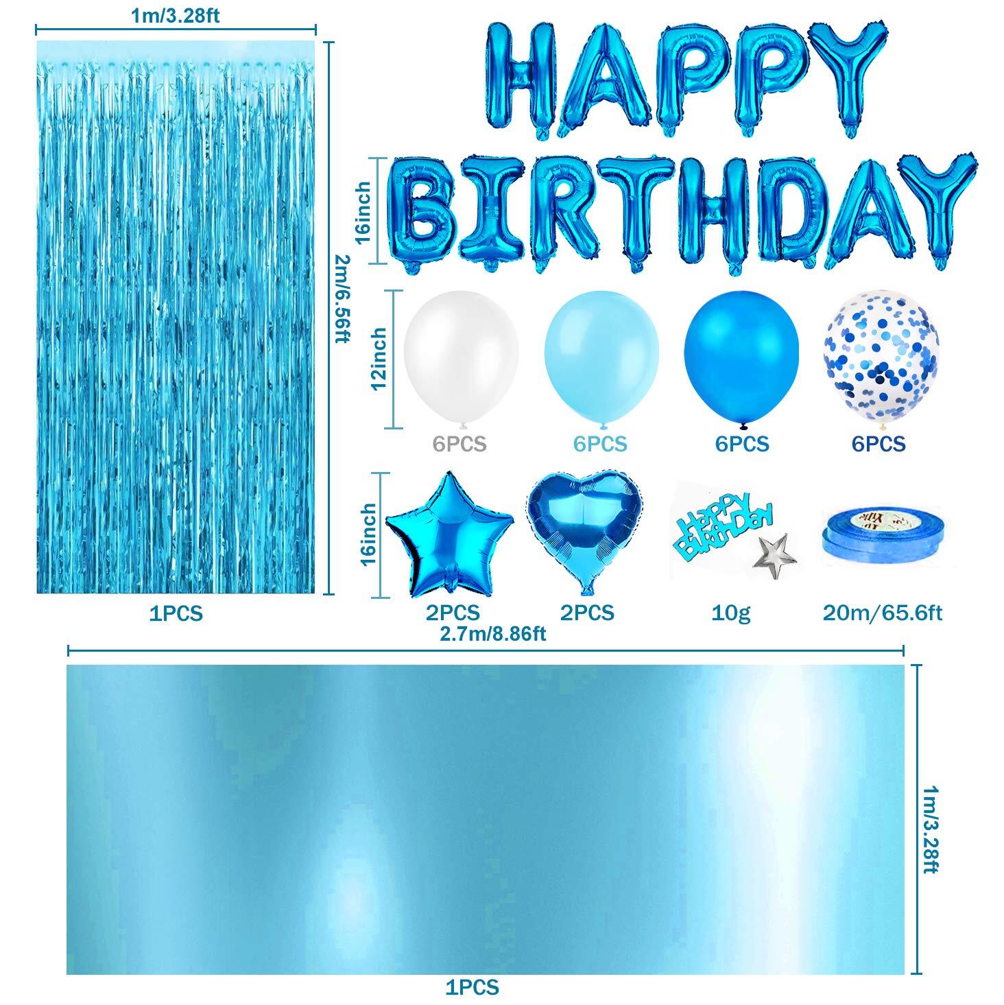 MOVINPE Blue Birthday Party Decoration, Happy Birthday Banner, Sky-Blue Fringe Curtain, Foil Tablecloth, Heart Star Foil Confetti Balloons, 10g Table Confetti for Girl Boy Kids Men Women Adults MOVINPE PARTY SUPPLY What you get: Happy Birthday banner, 6pcs Blue confetti balloons, 6pcs Blue balloons, 6pcs Light Blue balloons, 6pcs White balloons, 1pc Sky-Blue fringe curtain, 1pc Blue tablecloth, 4 pcs foil balloons (heart and star), 10g Blue confetti, 1 straw, 20m ribbons. How to inflate: Latex balloons support air and helium, can fly high after filled by helium. Foil balloon as letter and heart balloons don't support helium, please inflate them via. straw directly. All balloons are non-toxic and durable, safe for kids. Sky-Blue Fringed Foil Curtain: 1m*2m large, shining, suggest you to hang it on the door, or hand it on the wall as party backdrop. Sky-Blue Tablecloth: 100 x 270cm (40" x 106" ), also shining. Spill some confetti on the tablecloth, fabulous! Perfect birthday decoration Set for boys, girls, kids, adults, men and Ladies. Absolutely make your party shine!!! Shipping from the USA All of our products are shipped from the USA, ensuring quick delivery to your destination. Payment We offer the following payment methods: PayPal, credit card, bank transfer, and eBay's secure payment system. Free Shipping & Free Returns Shipping within the USA is FREE. Additionally, any return is absolutely free for you. Risk-Free Purchase You have the option to return an item within 30 days without any justification. We cover the return shipping costs! Fast Shipping We ship immediately upon receipt of payment. Generally, the package is delivered within 2-3 days in the USA. If it takes longer, we will contact you. Quality and Costs Made in Europe, USA, China No customs fees or additional charges Total satisfaction guarantee Invoice with declared VAT available upon request in .pdf format Feedback Your feedback is very important to us. After you pay for your purchase, you will automatically receive positive feedback from us.