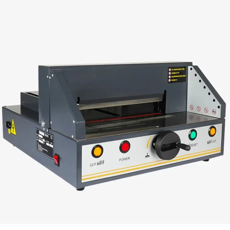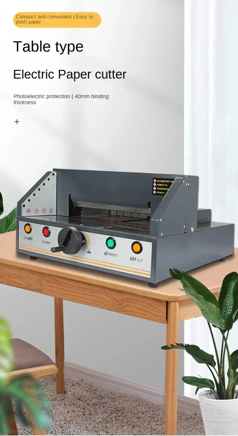 MQ-330H paper cutter a4 tender books / PVC / office desktop manual pressure paper electric cutting machine trimmer Product model: 330H electric paper cutting machine Paper cutting thickness: 40mm Cutting size: 330mm Paper pushing method: manual Cutting accuracy: ± 0.5mm Motor power: 200w Power parameters: 220V/50Hz Paper cutting format: 330 * 330 * 40mm Product size: 580 * 580 * 300mm
