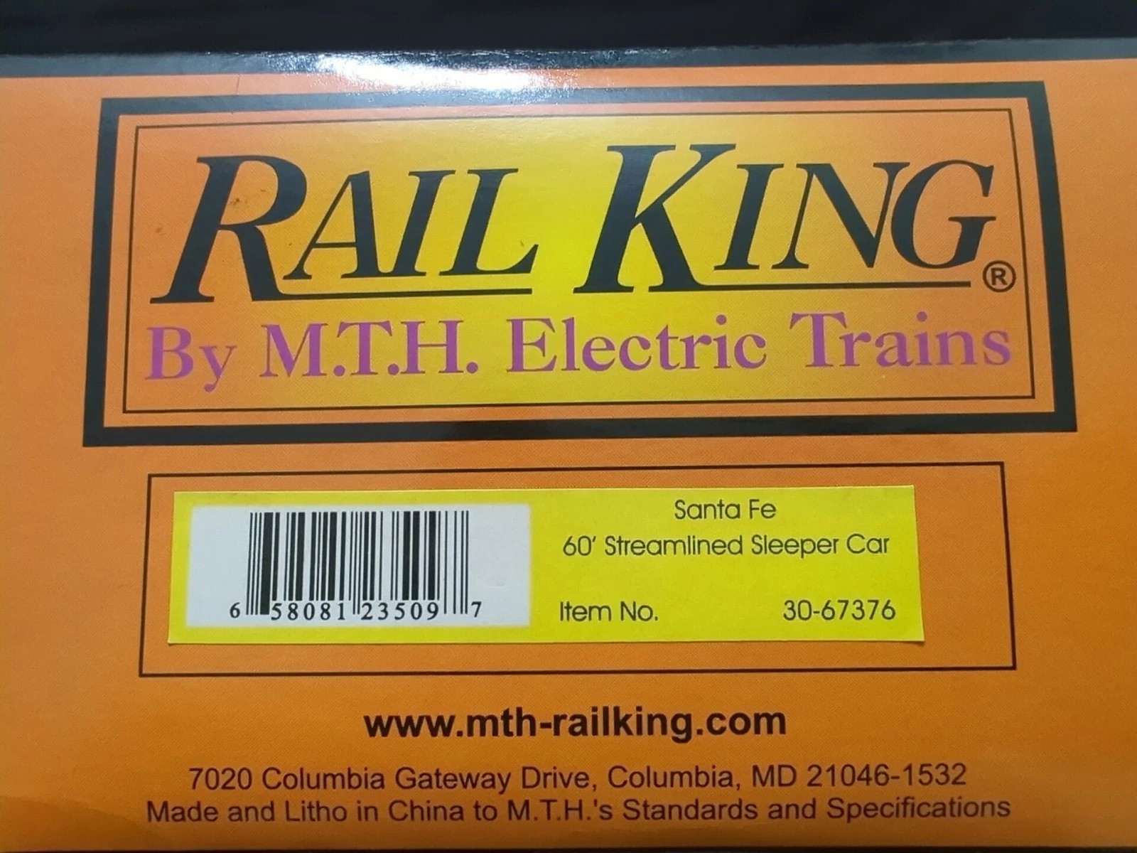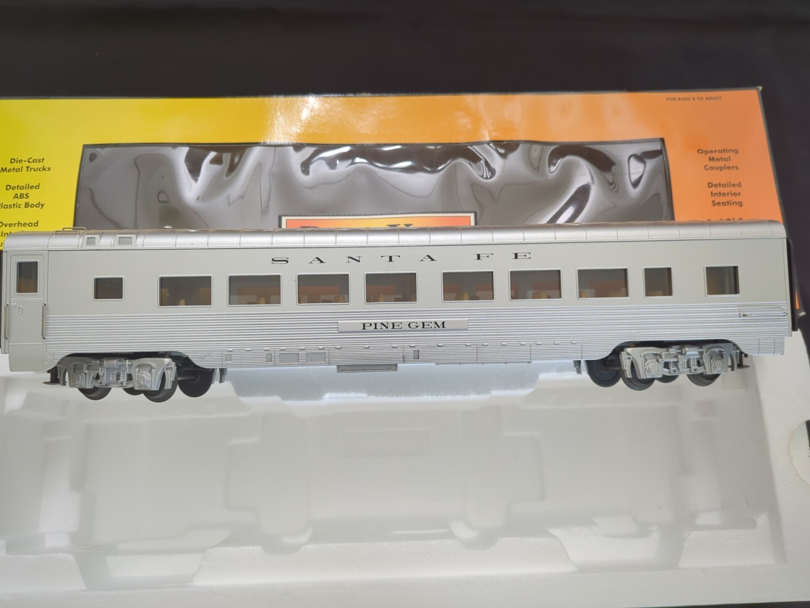 MTH RAIL KING O-27 SANTA FE 60' STREAMLINED SLEEPER CAR 30-67376. CONDITION IS USED. FUNCTIONALITY OF THE INTERIOR LIGHTING IS UNKNOWN AS I AM NOT ABLE TO TEST THEM!!