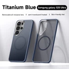 Mag Safe Case Fr Samsung Galaxy S25 Ultra S25+ S25 Transluscent Shockproof Cover Product Description: Protect your Samsung Galaxy S25 Ultra / S25+ / S25 in style with this Magnetic Semi-Transparent Case. Featuring a premium blend of TPU and PC materials, this case combines durability with a skin-friendly feel, ensuring comfort and long-lasting use. The sleek, semi-transparent frosted finish offers a modern aesthetic while resisting fingerprints and scratches, keeping your case looking pristine. Compatible with MagSafe chargers and accessories, this case allows for effortless magnetic charging and attachment. The removable lens cover provides enhanced protection for your camera, ensuring it stays free from scratches while preserving photo quality. The case's slim, lightweight design doesn’t compromise on protection. It effectively absorbs shocks and prevents damage from everyday drops and impacts, making it the perfect blend of functionality and style. Elevate your device’s look and protection with this versatile, magnetic semi-transparent case today!
