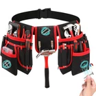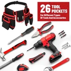 tool belt Adjustable and Detachable: The tool belt is designed with extra long adjustable straps that can accommodate waist circumferences from 31" to 48". This ensures a comfortable fit for all users. Additionally, the toolbelt features a quick-release buckle for easy on and off. And the 3 separate pockets are removable allowing you to customize the configuration of the tool belt to your preference. Multifunctional 26 Tool Pockets: Featuring 26 pockets of various sizes provides offers ample space for all your essential tools like nails, screws, hammers, tape measures, screwdrivers, wrenches, etc. Whether you're an electrician, carpenter, construction worker, or simply a DIY enthusiast, this tool belt is a must-have accessory that will enhance your productivity and efficiency. Magnetic Tool Belt: The hammer holder's top and both pouches' fronts are equipped with magnets, providing a super strong magnetic force. Conveniently place and remove nails, screws, and other small magnetic items without the worry of losing them. Heavy Duty Construction: Made from high-quality oxford fabric with double stitching and metal rivets, this tool belt is built to withstand heavy-duty construction tasks. The thickened and widened waist belt provides comfort and breathability, minimizing pressure and fatigue on the waist. With its firm buckle, the tool belt stays securely in place so you can focus on getting the job done. The Perfect Gift for Men: The adjustable waist apron toolbelt is suitable for electricians, carpenters, construction workers, and makes for an excellent gift for dads who love DIY projects. Upgrade your tool-carrying experience today with our Magnetic Tool Belt!