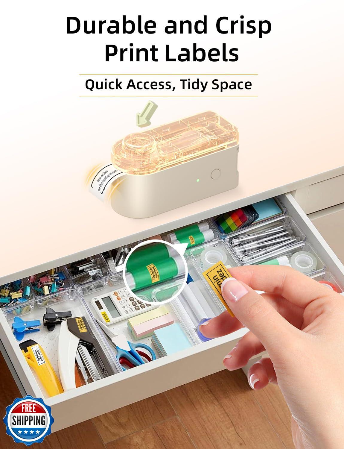 This label maker is a game-changer for organization! Super portable and rechargeable, it prints crisp, waterproof labels with tons of fonts, emojis, and symbols. Love the Bluetooth feature—super easy to design labels from my phone. Perfect for home, office, or kitchen. The included tapes are a nice bonus! Super convenient and fun to use.