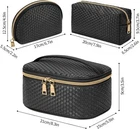 we are always here for you KTMOUW Makeup Bag 3 Pcs Waterproof Cosmetic Bag Set Portable Travel Multifunction Storage Organizer, Weave Toiletry Bag for Women and Girls, Black Description About this item 【Durable & Water-Resistant】- Classic and elegant cosmetic bag is made of PU woven leather and polyester lining. It is durable, waterproof, dirt-resistant and scratch resistant. Coupled with the advanced and smooth metal double zipper design, when the tools are stored neatly, you will easily get what you need. 【Large Capacity】- The makeup bag set has 3 different styles and sizes. Includes a large cosmetic bag (suitable for carrying in a luggage) and two medium cosmetic bags (suitable for carrying in a tote bag), large enough to accommodate a variety of cosmetics and toiletries, etc. Can be stored daily and carried on trips. It’s perfect to meet all your different needs. 【Portable Lightweight Design】- Portable travel storage bag adopt premium weave PU leather, lightweight, soft and Collapsible, easy to compress and store. The comfortable, portable handle design allows you to carry a lot of daily necessities easily and without worries. Three ways to carry: carry it by hand, store it in a luggage, store it in a tote bag. 【Multifunctional Makeup Bag】- Three ideal sizes of makeup bag, lightweight (only 0.74 lbs). Large makeup bag: 8.3"x5.9"x3.5"(LxWxH), medium bag: 7.9"x2.6"x3.7"(LxWxH), small bag: 6.7"x2.2"x4.9"(LxWxH). Can store cosmetics, jewelry, toiletries, essential oils, electronic accessories or pens. Can be used as a toilet bag, cosmetic bag, travel bag or toiletry bag. It's perfect for tourism, vacation, business trip and outdoor activities. 【AMAZING GIFT】- Simple and elegant cosmetic bag, can be used as a birthday gift, Christmas gift, graduation gift, anniversaries gift and Valentine's Day present for your mom, wife, yourself and other friends. THIS ITEM IS NOT INTENDED FOR USE BY CHILDREN 12 AND UNDER. Shipping Fast and free shipping Payment safe payment via ebay Return 30 Day's returns