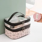 Makeup Bag Cosmetic Bag Travelling Double Layer Make Up Bag Organizer Medium Case for Women Girls Reusable Toiletry Bags(Pink)