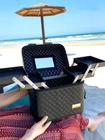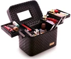 PREMIUM MATERIAL: This Makeup Bag is made of high quality Simulation Leather with waterproof .4 trays shelf can be smoothly slid sideward, fast and simple to reveal storage in each compartment(Note: Cosmetic Accessories Not included). PLENTY OF STORAGE SPACE: This Makeup Bag have enough space to storage your makeup and cosmetic accessories, like lipstick, lip gloss, Perfume,makeup brushes, eyeshadow, makeup palettes, hairbrushes, skin care products, nail polish, nail art tools, shampoo ,Jewelry, Electronic Accessories, Camera, Essential oil, Toiletries, Shaving Kit, Valuable objectsand so no. MULTIFUNCTIONAL:Portable and Lightweight design,can carry with you.The make-up bag comes with a built-in,you can make makeup anytime anywhere DIMENSION: 11" x 7.1" x 8.9"(Figure 6, with iPad as a reference).Weight :1.07kg(2.36lb).It's more lightweight than aluminum make-up bag.(The bag are fixed by glue, so there might be some smell,Open the box and leave it for a period of time, the smell will be eliminated) The Cosmetic Train Case Makes The Box Very Gorgeous, Fashion As Well As Cute, And Is Also An Ideal And Precious Gift For Your Friends. 100% CUSTOMER SATISFACTION GUARANTEED :If came in used, dirty and defective,please us.We'll give you a or a new one. Customer satisfaction is on our top priority.