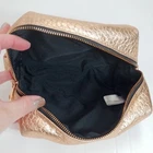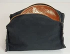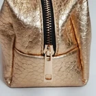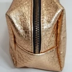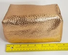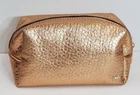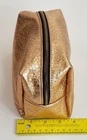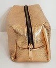 Makeup Bag Faux Grain Leather Travel Accessory Zipper Lined Metallic Peach Length: 8" Width: 4" Height: 4.5" Preowned. EXCELLENT CONDITION. No holes, rips, peeling, stains, marks, fading, odor, etc. Zipper works perfectly. Feels like soft flexible leather, but is man-made material. See photos & description for measurements. SEE PHOTOS. SMOKE-FREE HOME Please review all photos & contact me with any questions before buying. NO RETURNS. Ship within 1-2 business days of receiving payment. Combined shipping for multiple purchases unless this may result in damage to an item.