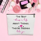 Makeup Bag, Friendship Gifts for Women, Best Friend Encouragement Print Travel Toiletry Bag Gifts for Friends, Woman, Sisters and Daughters, Halloween, Birthdays, Christmas Product Details Material Type: Canvas Item Weight: 1.2 Ounces Item Dimensions L x W x H: 7.1"L x 9.8"W x 0.3"H Manufacturer: CLHHM Brand Name: CLHHM Age Range Description: Adult Pattern: Striped Color: White Closure Type: Zipper Charming Design: This makeup bag, a perfect makeup organizer and travel essential, features the phrase "The Best Things in Life," making it an ideal gift for women, moms, sisters, friends, and daughters, perfect for birthdays or christmas. Meaningful Gift: This friendship-themed cosmetic bag is a thoughtful present for various occasions like birthdays, Christmas, Valentine's Day, Mother's Day, and graduations, suitable for moms, friends, wives, sisters, daughters, nieces, colleagues, and teachers. Size Details: Crafted from soft linen material, this 9.8 x 7.1 inches toiletry bag provides practicality. Please allow a measurement deviation of 0.35-0.65 inches due to manual measurement. Versatile Use: This simple modern makeup bag can serve as a travel organizer, daily use bag, makeup pouch, coin purse, or period bag, making it a unique gift suitable for women of all ages. Great Gifts: These standout bags are excellent gifts for Women, Mom, Grandma, Aunt, Sister, Cousin, Bestie, Godmother, Sister-in-law, Bride, Mother of the Bride, Mother of the Groom, Maid of Honor, Teacher, Lawyer, Doctor, Nurse, and Coworker. They are both simple and distinctive, perfect for travel and containing toiletries efficiently.