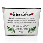 Makeup Bag Friendship Gifts for Women, Thank You Gifts Appreciation Gift for Best Friend Besties Sister Gift From Sister Graduation Gifts Cosmetic Zipper Pouch Travel Toiletry Bag -A16 Product Details Color: Friendship 16 Brand: LWBEO MPN: 001 UPC: Does not apply EAN: Does not apply Product Dimensions : 9.5 x 1.5 x 7 inches; 1.45 ounces Item model number : 001 Department : Unisex Adult Manufacturer : LWBEO Country of Origin : China Size And Material: The size of the cosmetic bag is about 7x9.5", and the width of the bottom is about 1.5". It is easy to stand on the table to access items; it is made of waterproof cotton and linen material, stain-resistant and washable. Exquisite Design: The package contains an exquisite and practical cosmetic bag with a zipper to prevent items from falling; the pattern is printed on both sides and clear. Multi-Purpose Function: The portable storage bag does not take up a lot of space when placed in handbags and suitcases. It can be used in daily life or when traveling. It can be used as a toiletry bag, purse, tool bag, electronic equipment bag, accessory bag, and pencil bag. Keep your belongings neatly organized. Occasion: Gift for Women, Gift for Mom, Sister, Daughter, Grandma, Aunt, Wife, Niece, Girlfriend on Birthday, Anniversary, Retirement, Graduation, Teacher's Day, Valentine's Day, Mother's Day, Women's Day and other festivals.